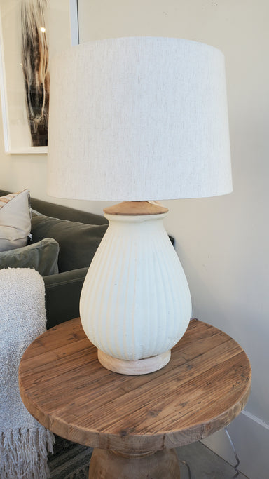 16 x 16 x 26.5 Made of a composite, natural ecomix, the Cordova Lamp base is composed of hardening agents for longevity. The finish is warm whi...